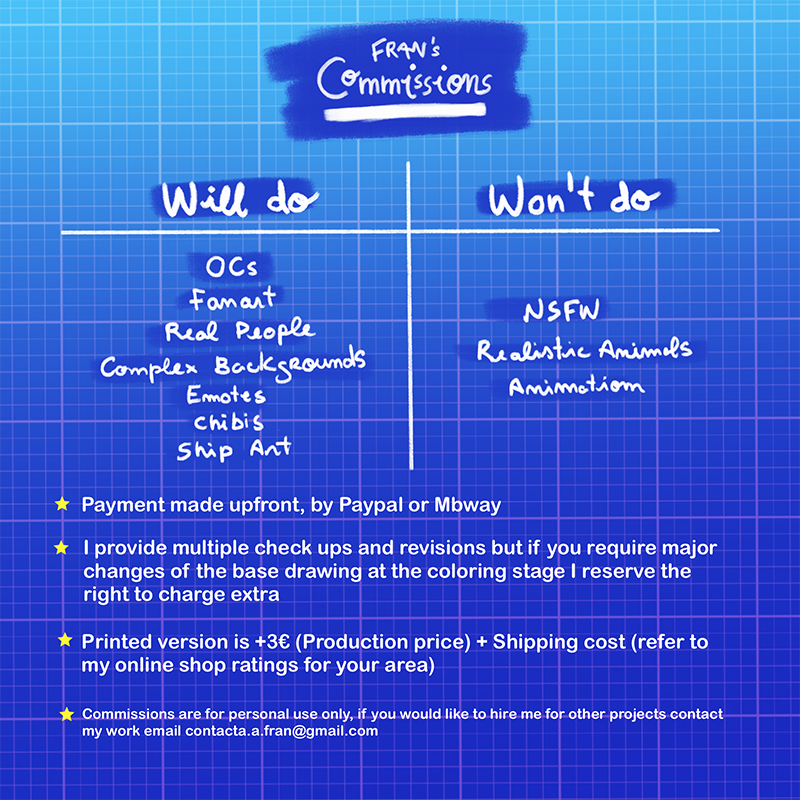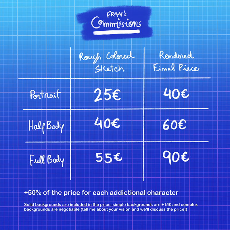 This info is only about personal use commissions.If you're interested, send me an email to [email protected]